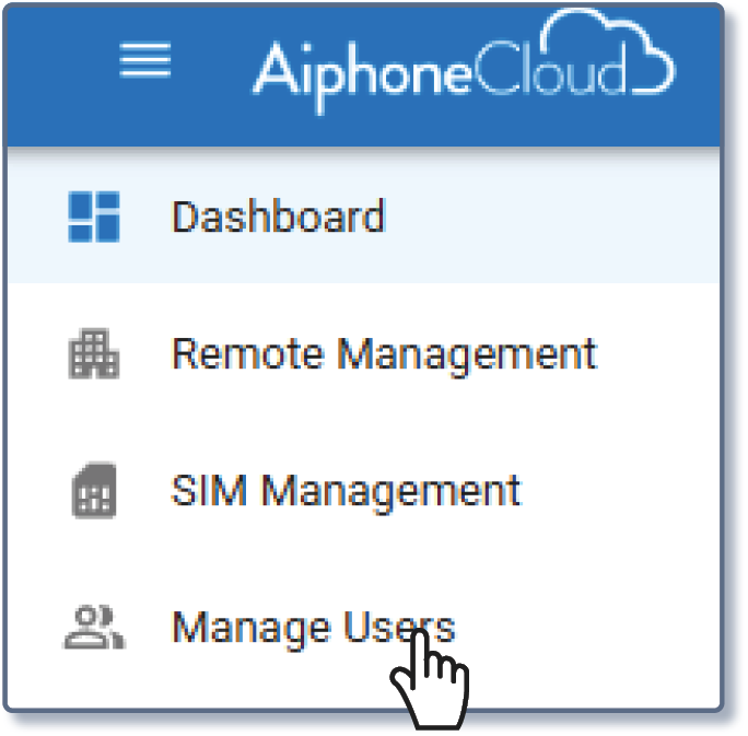 Log in to AiphoneCloud and navigate to Manage Users on the side menu.