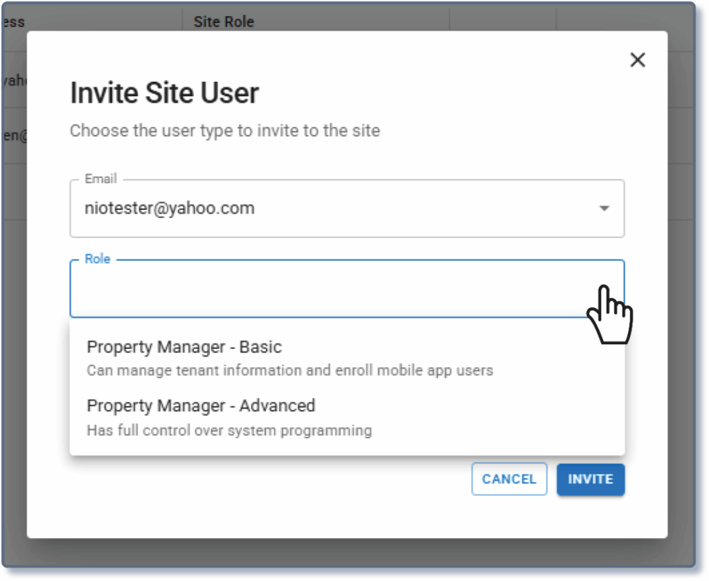 Property Management branch admins and managers can access all sites managed by the branch. They can invite and remove users from the branch and give Member users access to one or more Sites. Members will not be able to access any Site unless given access by an Admin or Manager.
