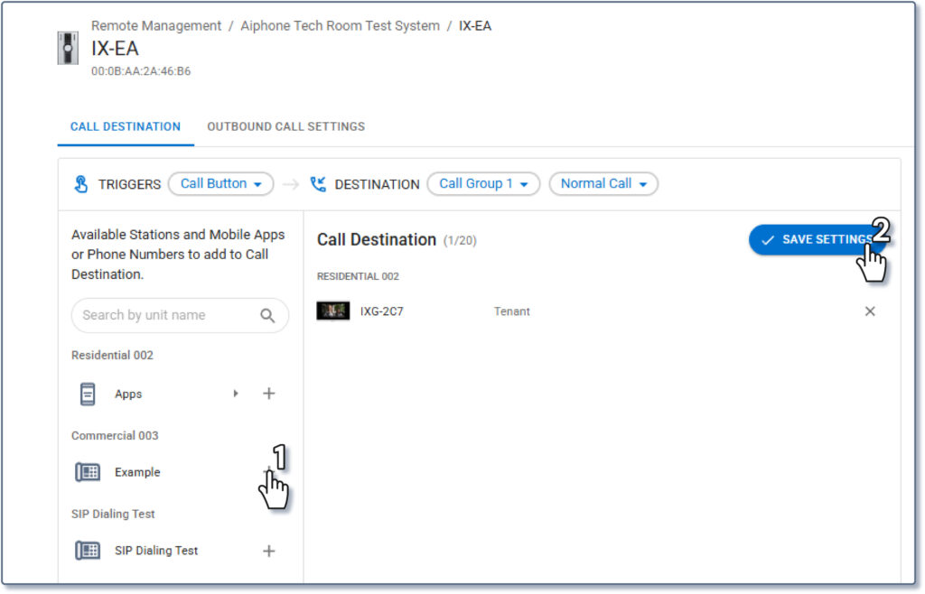 See this page for more entrance station settings, including how to configure a call button for any newly added units: https://www.aiphone.com/kb/remote-management-guide-entrance-station-settings/.