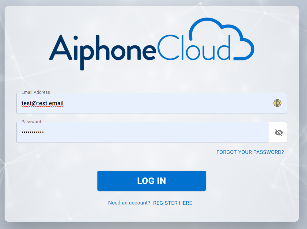 Navigate to https://aiphone.cloud. Log in with an existing account, or register a new one.