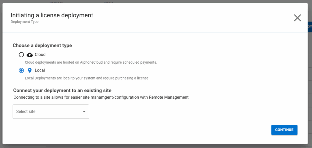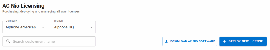 Navigate back to AiphoneCloud. Under AC Nio Licensing, click + Deploy New License.