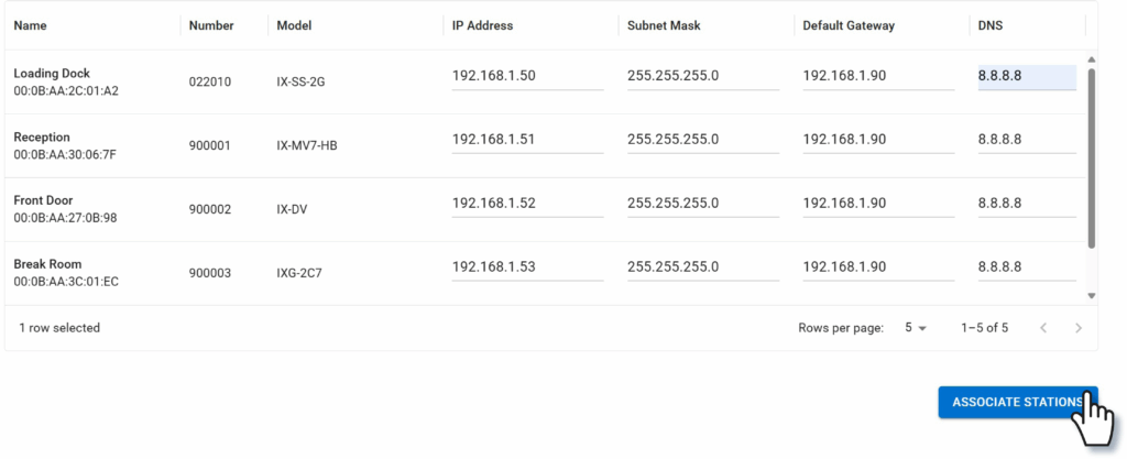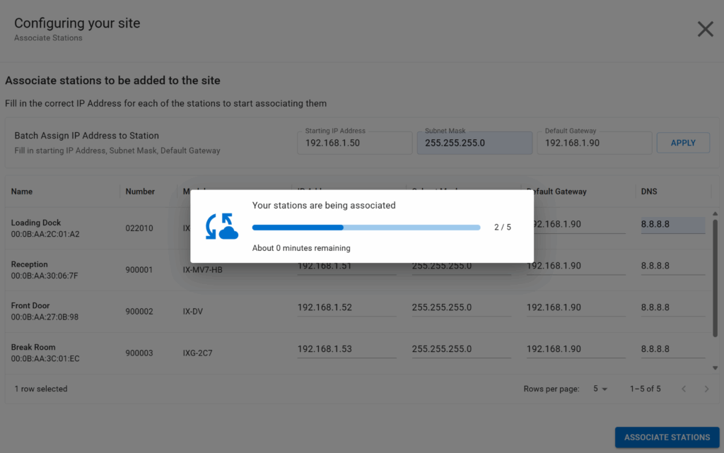 Once the IP addresses have been set, click Associate Stations. The stations will be associated one at a time; this will apply the IP address to the station, causing it to reboot.