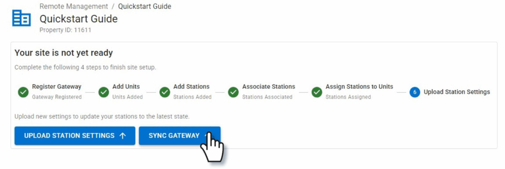 This will complete the upload to stations. To finish registering IXGW-TGW with the portal, click Sync Gateway.