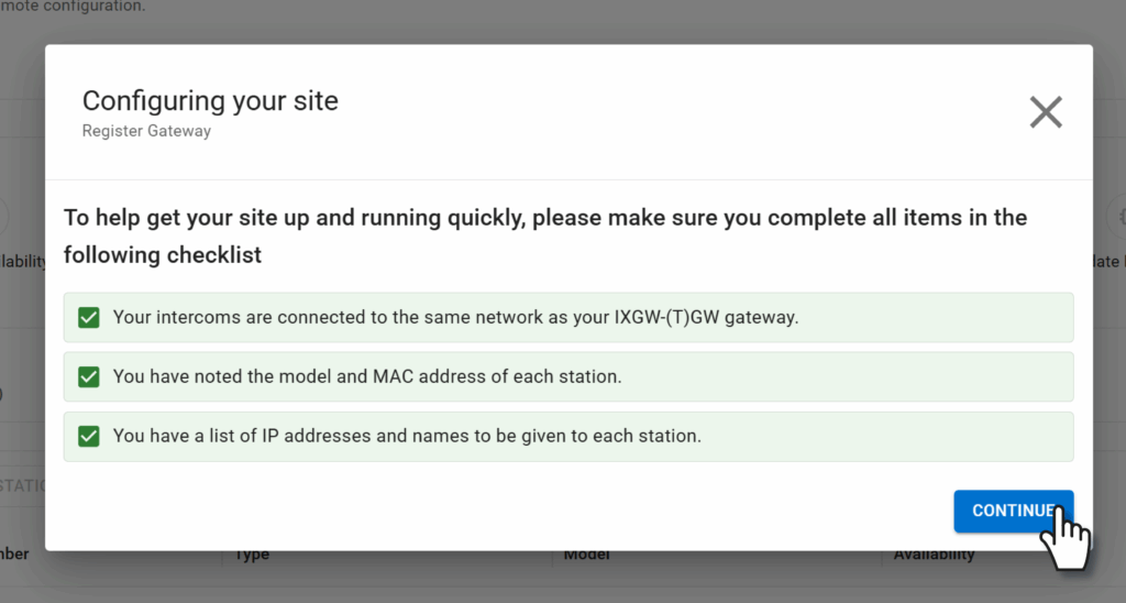 A checklist will appear, verifying that the steps mentioned in the previous article were completed. Make sure they have been and click Continue.