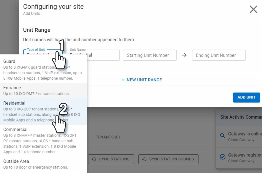 Tip: It is best practice to make outside areas to house door stations. If they are nested in a commercial, residential, or guard unit, they will only be able to call stations in the same unit.
