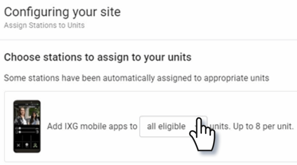 Use the drop-down menu next to the image of a smartphone to to select which unit types will have apps assigned to them, if any.